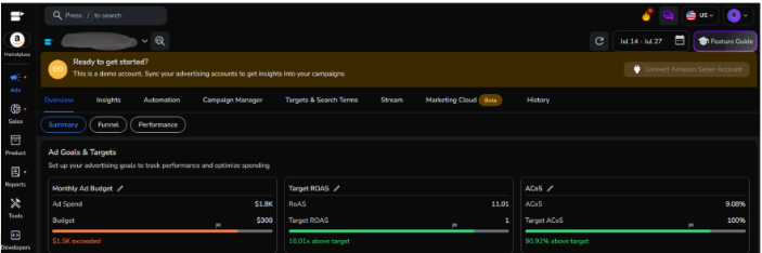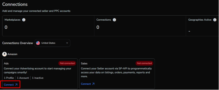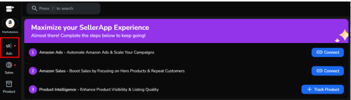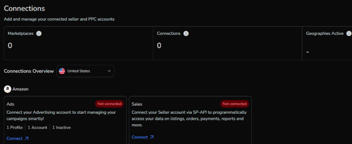 How to Connect Amazon Advertising Console To SellerApp Estimated reading: 7 minutes Are you currently flitting between six different tabs to figure out if your PPC campaigns are actually working? Connect your Amazon Advertising Console to SellerApp and get real-time campaign data, automated bid adjustments, and intelligent optimization running 24/7 in one dashboard.With your Amazon Advertising Console linked to SellerApp, your campaign data now flows automatically into one dashboard. Bid optimization runs continuously. Budget controls prevent overspend. And you can see exactly what’s working without manually piecing together reports.Here’s how to connect Amazon Advertising Console to SellerApp:Sync Your Amazon Advertising Console To SellerApp From The Dashboard HomeWhen you first log into SellerApp, you’ll see a setup banner at the top of your dashboard.Find the Setup BannerLook at the top of your dashboard for “Maximize your SellerApp Experience” with prompts to connect your accounts. Click Connect for Amazon AdsYou’ll see two connection options listed. Click the Connect button next to Amazon Ads – Automate Amazon Ads & Scale Your Campaigns. Authorize Through AmazonYou’ll be redirected to Amazon’s login page. Sign in with your Seller Central credentials, review the permissions SellerApp needs to access your advertising data, and click Authorize. Wait for Sync SellerApp pulls in your campaign data. This usually takes 15 to 30 minutes for the initial sync.Once complete, your campaigns, keywords, and performance metrics appear in the SellerApp Ads dashboard.Connect Your Amazon Advertising Console To SellerApp Through Account SettingsManage all your integrations from your profile settings.Click Your Profile Icon Top right corner of your SellerApp dashboard. It displays your initials in a circle. Select ConnectionsFrom the dropdown menu, click Connections (may also be labeled Connectors depending on your account). Find Amazon Advertising ConsoleScroll through the list of available integrations and locate Amazon Advertising Console or Amazon Ads. Click ConnectHit the Connect button next to the Amazon Advertising option. Authorize on Amazon Amazon’s authorization page opens in a new window. Sign in with your Seller Central credentials, review what SellerApp can access, and click Authorize.Data Syncs Automatically Takes about 15 to 30 minutes for the initial data pull to complete.Connect Your Amazon Advertising Console To SellerApp Directly from Ads SectionAlready working in the Advertising section? Connect from there.Navigate to AdsLook at the left sidebar in your SellerApp dashboard and click Ads (the icon looks like a megaphone). Click Connect Advertising AccountsYou’ll land on the Ads home page. At the top, you’ll see a prominent button or banner prompting you to “Connect Advertising Accounts”. Click it. Authorize Through Amazon Amazon’s login page opens. Sign in with your Seller Central credentials, review the permissions, and click Authorize.Let the Sync Run Your advertising data starts flowing into SellerApp. Initial sync takes about 15 to 30 minutes.Once finished, your Campaign Manager will populate with all your campaigns, ad groups, keywords, and performance data.Verify Your Connection WorksAfter the sync completes, confirm everything’s connected properly.Go to Campaign Manager Navigate to Advertising → Campaign Manager in your SellerApp dashboard.Look for Your Campaigns You should see:All your active and paused campaigns listedReal-time ACoS, ROAS, and spend dataImpressions, clicks, and conversion metricsPerformance trends over timeIf something’s missing:Try disconnecting and reconnecting through the Connections menu in your profileMake sure you authorized the correct Amazon Seller Central account (the one where your advertising campaigns live)Verify you have active campaigns running in your Amazon Advertising ConsoleStill having issues? Email support@sellerapp.com and we’ll troubleshoot with you. Usually resolved within a few hours.What Can You Access After Connecting To the SellerApp Dashboard?Once your advertising data syncs, SellerApp starts analyzing campaign performance and identifying optimization opportunities.Real-Time Campaign Intelligence Your advertising data syncs every few hours automatically. See which keywords convert, which products drive profit, and where budget goes without logging into multiple platforms.Automated Bid Optimization SellerApp’s machine learning monitors campaigns continuously and adjusts bids based on performance patterns. It works 24/7 so you don’t have to check campaigns manually every few hours.ACoS Control Without Manual Work Set your target ACoS and SellerApp automatically adjusts bids to hit your profitability goals. No more overspending on underperforming keywords or missing opportunities to scale winners.Actionable Performance Reports Instead of spreadsheet exports, you get clear insights into which campaigns scale profitably, which keywords waste budget, and what your true ROAS looks like across all campaigns.Advanced Budget Controls Run ads only during peak shopping hours with dayparting. Set hourly budget caps to prevent runaway spend. Control exactly when and how your ad budget gets deployed.Why This Connection MattersMost sellers know what they spent on ads yesterday. What they don’t know until much later is whether those ads were actually profitable.By the time you realize a keyword bled budget or a campaign hit its stride, the opportunity has passed. Manual adjustments happen too late. Budget optimizations arrive after damage is done.The Problem Without Integration You check ACoS in Seller Central. Pull a search term report. Export it to Excel. Look for problem keywords. Go back to Seller Central to add negatives. Check bids for top performers. Update them manually. Repeat this for every campaign.Then do it all again tomorrow because performance shifts constantly.What Changes After You Conne